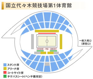 大田区総合体育館には、チケバスシート及びコートサイド席は設置されません。