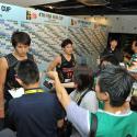 試合後、インタビューに答える#11桜井選手、#13渡邉選手、#6比江島選手9月15日