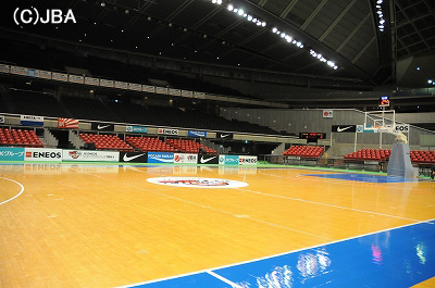 朝一番のメインコートは、J SPORTSをはじめ、運営スタッフが準備をしていたので、思ったよりも温かい空気が流れていました。コートに手を触れてみても、ほんのりと温かい感じがします。まだ傷1つついていないペイントエリアやセンターサークル。これから始まる12試合を経過したあとには激戦の傷跡を残すことになるでしょう。その激戦を制して、最後に笑うのは誰なのか。