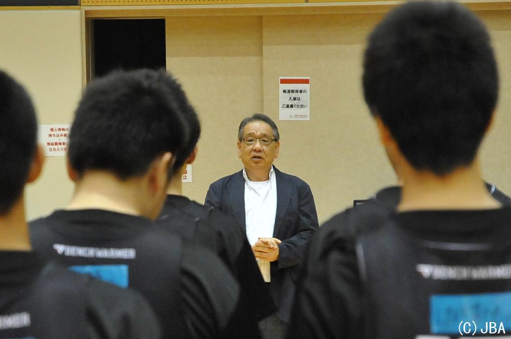 開講式では男子日本代表チームの長谷川 健志ヘッドコーチが挨拶 2016/10/06