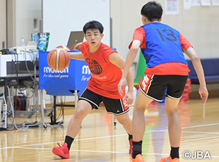 最終合宿に先駆け、「いよいよ本大会へ向かいます。いろんな人たちに感謝し、その気持ちを忘れないこと。常にチャレンジし、成長につなげることが一番大事なので、臆することなく結果を恐れずにプレーしてください」と水野慎也チームリーダーが選手たちに伝え、8月25日(月)よりスタート。2023年の前回大会、昨年はFIBA U18アジアカップ2024へいずれも飛び級で選考された白谷柱誠ジャック選手(福岡大学附属大濠高校1年)。アレハンドロ・マルティネスヘッドコーチのバスケを熟知する白谷選手が、これまでの合宿でもチームの中心にいました。最終メンバー12人が決まり、最初の練習前に選手同士で話し合い、満場一致で白谷キャプテンが誕生。人生初の大役に対し、「最初はあたふたしていましたが、合宿を重ねる毎に自分がやらなければいけない気持ちが強くなり、キャプテンの自覚を持って今はできています」と積極的に声をかけ、チームを引っ張ります。
