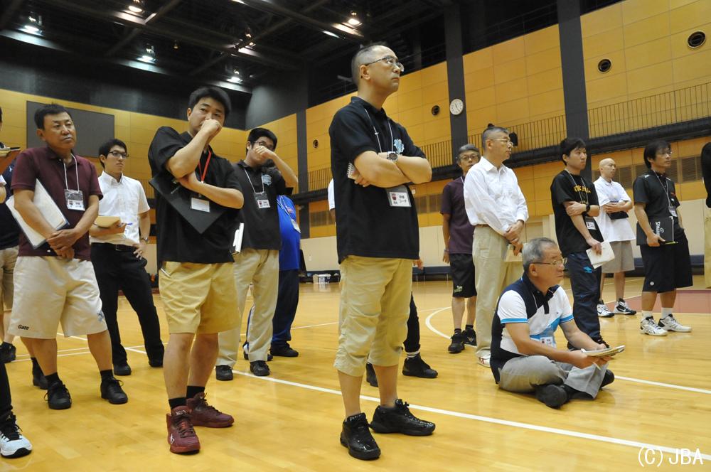 説明を真剣に聞く研修コーチたち 2016/09/29