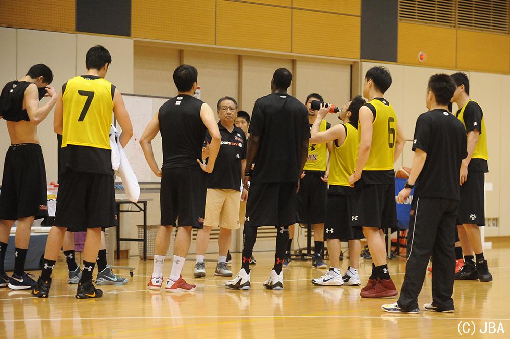 選手を集めて指示を出す長谷川 健志ヘッドコーチ